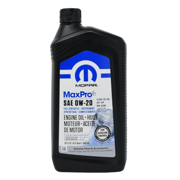 El aceite de motor 0W20 Mopar en una presentación de 946 ml (1 cuarto de galón) es un lubricante original y de alta tecnología, recomendado por el fabricante para los vehículos del grupo Stellantis (anteriormente FCA), incluyendo las marcas Chrysler, Dodge, Jeep y Ram.