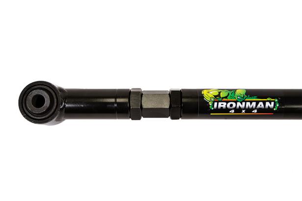 La Barra Panhard Ajustable Ironman 4x4 está diseñada para corregir el desplazamiento del eje que ocurre al levantar la suspensión de un vehículo. Es un componente clave en vehículos 4x4 con suspensión elevada, permitiendo alinear correctamente el eje trasero o delantero según corresponda.