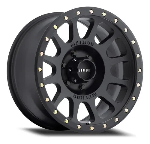 La llanta 305 NV presenta un icónico diseño de 12 ventanas y el logotipo METHOD en relieve a ambos lados del tapón central. Su borde biselado simula una llanta beadlock real, con pernos reemplazables en el borde disponibles en colores opcionales. Ofrece una capacidad de carga robusta de entre 2,500 y 3,640 libras, con opciones de alta resistencia (HD) para aplicaciones de hasta 4,500 libras.
